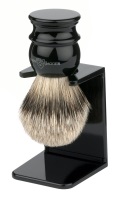 Edwin Jagger Large Silver Tip Badger Hair Shaving Brush With Drip Stand - Imitation Ebony
